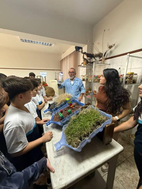 O 7º ano fundamental participou de uma aula prática explorando os efeitos da degradação ambiental e da remoção da vegetação nas cidades - como a erosão do solo. A atividade aconteceu na segunda-feira, 6/10, sob a supervisão da professora Geovanna Bastos e do técnico de laboratório Ricardo Pereira.