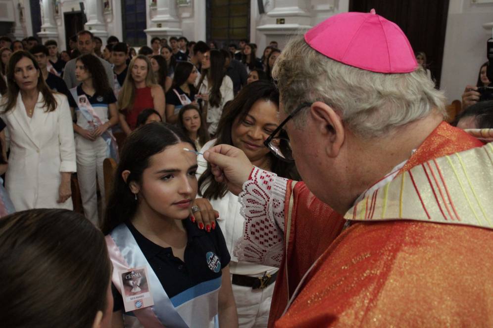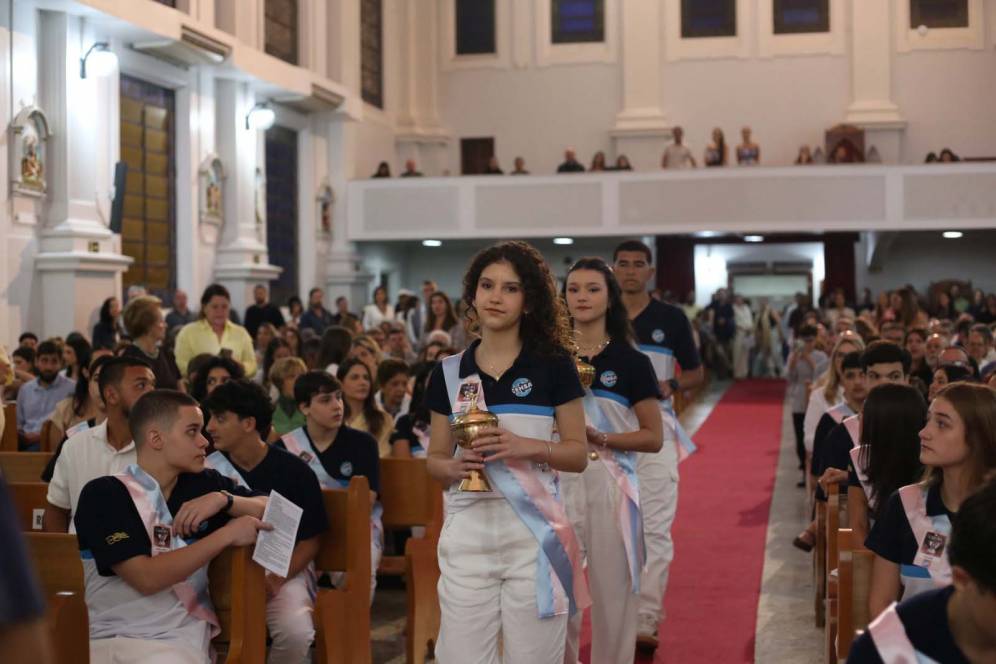 Na quinta-feira,30/10, 76 alunos do CENSA receberam o sacramento da Crisma, na capela da escola. A celebração do sacramento, que marca a confirmação e maturidade da fé cristã, foi testemunhado por padrinhos, familiares e amigos dos jovens que participaram desse momento de profunda espiritualidade e compromisso em serem testemunhas ativas da fé, na comunidade.
