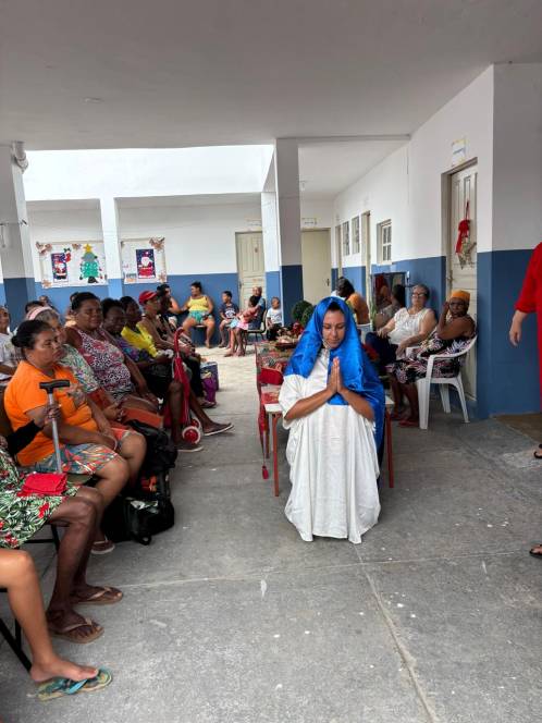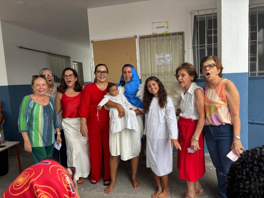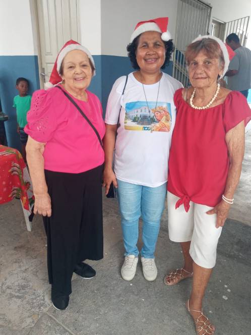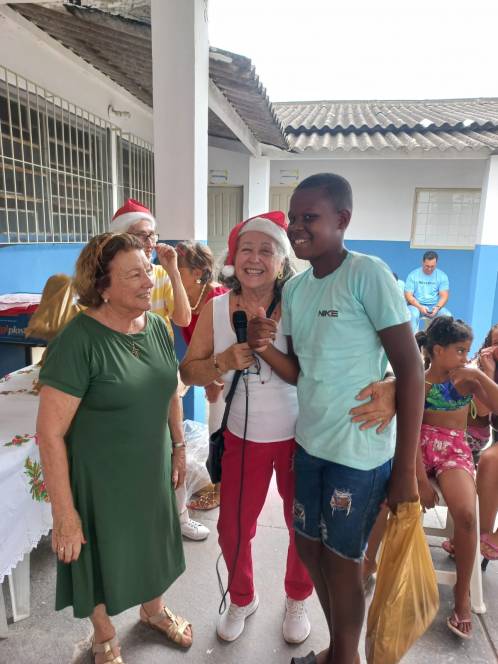 Os projetos Dom Bosco e Estrela do Oriente, desenvolvidos pela UESC - União das Ex-alunas Salesianas Campistas concluíram as atividades de 2025 com a celebração do Natal. No sábado, 13/12, a festa foi para as 81 crianças das comunidades da Baleeira e Oriente. Orações, música, contação de histórias, brindes, um delicioso lanche e kits com roupas, sandália, brinquedos e uma lembrança especial, confeccionada pela ex-aluna Ediná fizeram a alegria da garotada. No domingo, foi a vez de celebrar com as 138 mulheres que participam do Projeto "Estrela do Oriente". Num encontro fraterno, partilharam momentos felizes com direito a lanche, presentes, encenação da Anunciação e distribuição de alimentos e frangos.