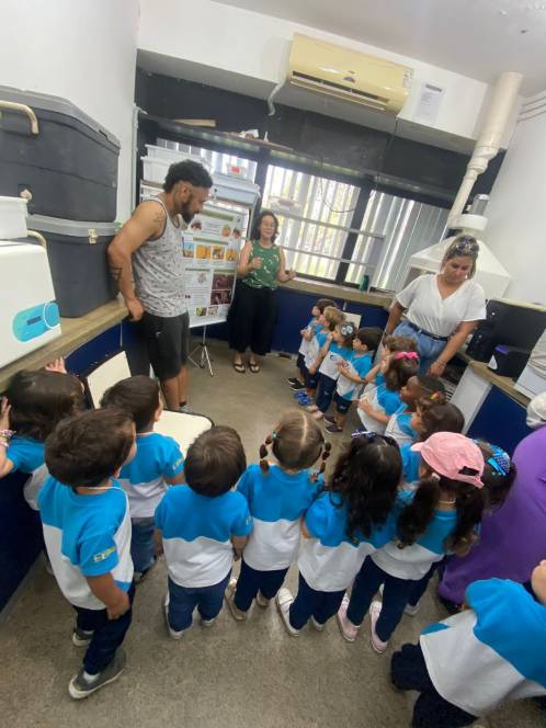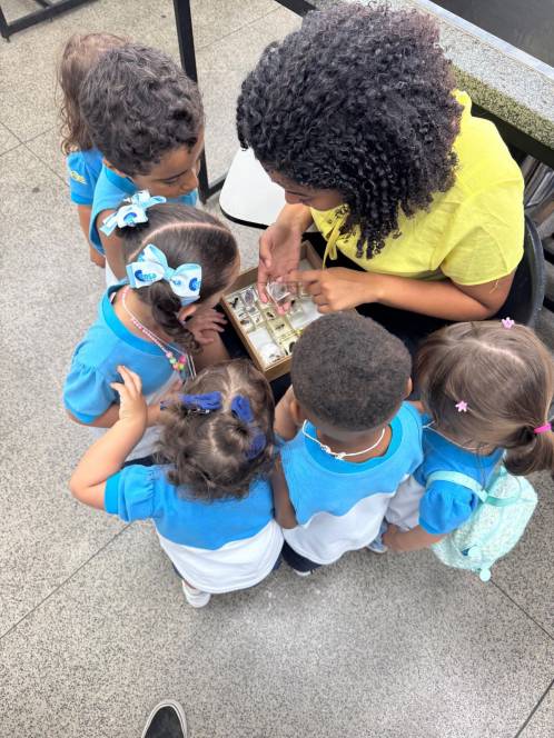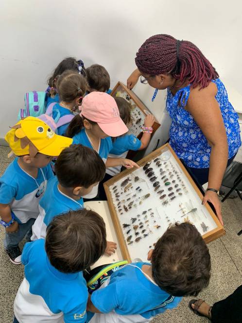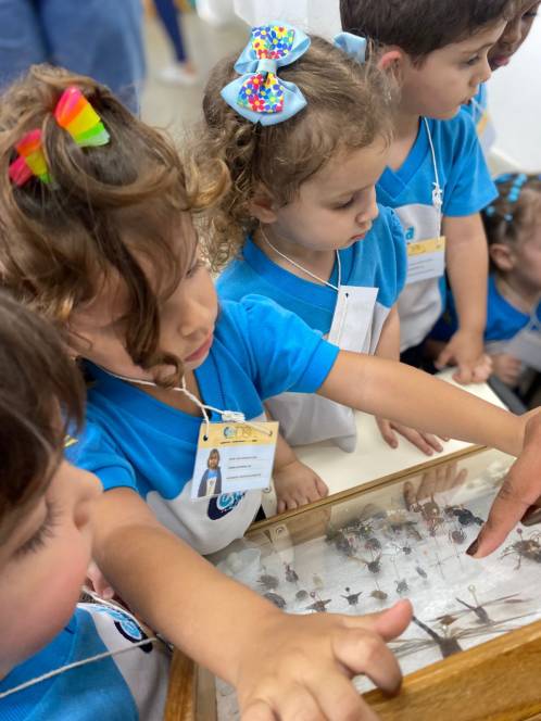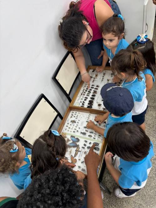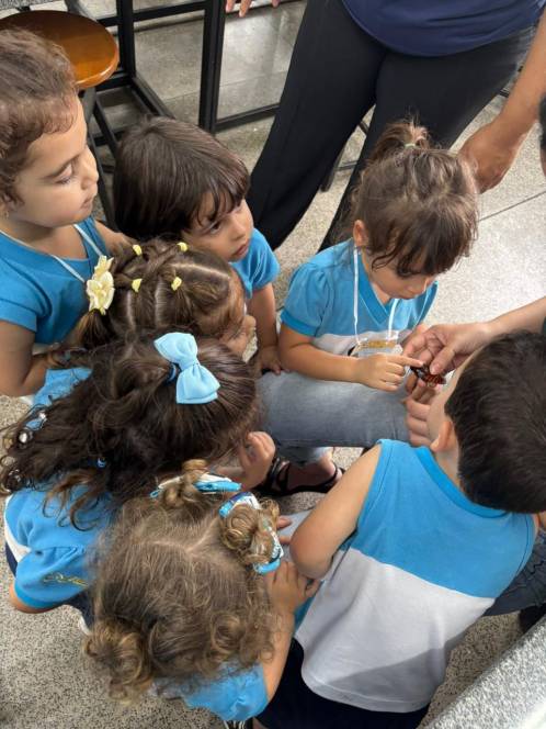 A Escola Infantil do CENSA promoveu uma atividade extra-muros para os pequenos do Maternal. Desenvolvendo o projeto "Insetos: a arte da vida em comunidade", os alunos visitaram o CCTA da UENF, na segunda-feira, 22/9. De ônibus, a garotada desembarcou no local cheia de curiosidade para conhecer e explorar, de maneira concreta, o mundo das abelhas, formigas e outros insetos. Numa aprendizagem sensorial e significativa, a aula de campo proporcionou um contato direto com a natureza e mostrou como cada um depende do outro para viver em harmonia. A criançada adorou!