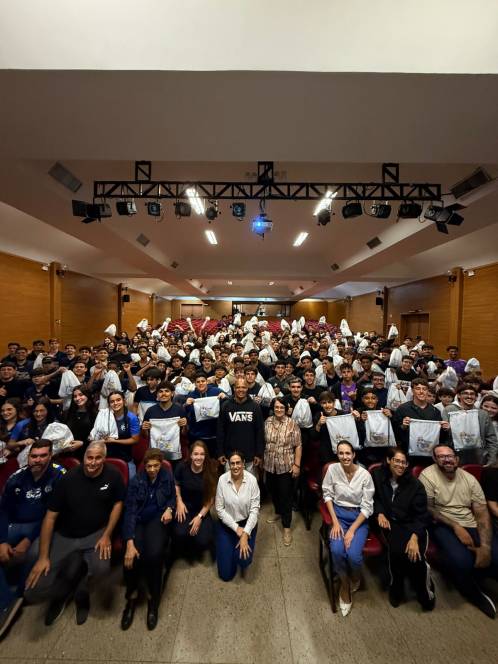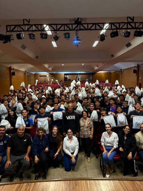 Muito treino e incentivo. Esse é o clima dos atletas do CENSA às vésperas dos Jogos Mazzarellos 2025. Na segunda-feira, 1º/9, os alunos se reuniram no auditório com a direção da escola para uma acolhida cheia de empolgação. Receberam um kit com camisa, mochila, garrafinha, bateco, balas, caneta e muita energia boa.