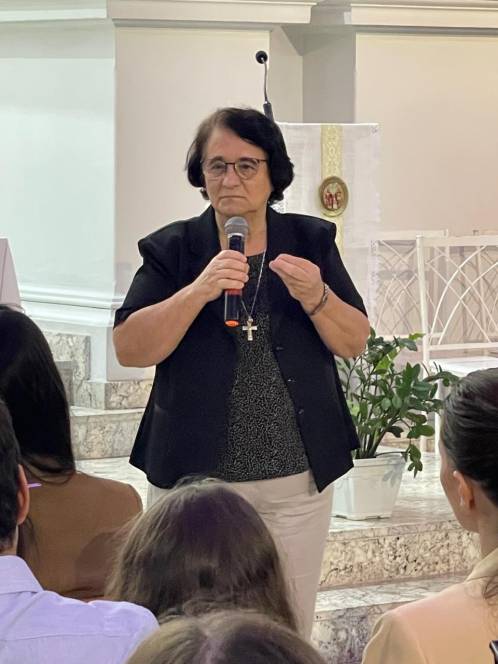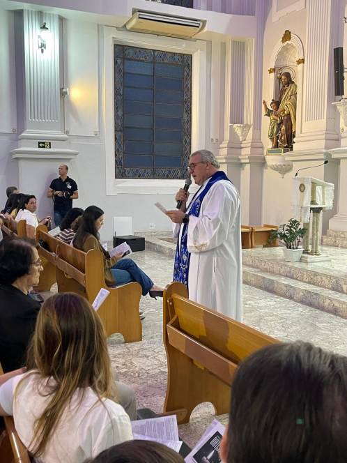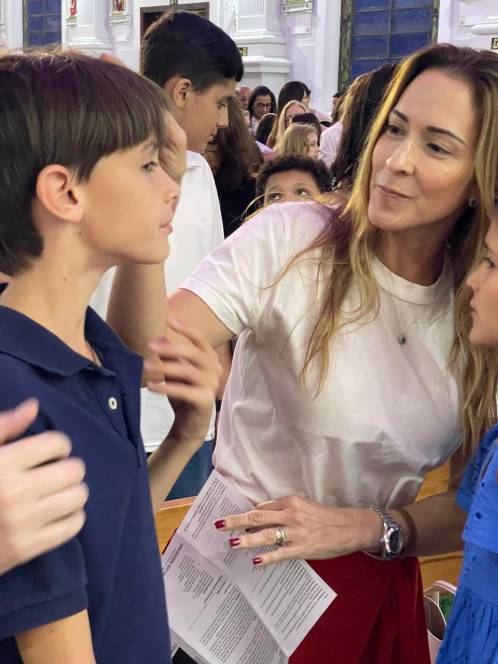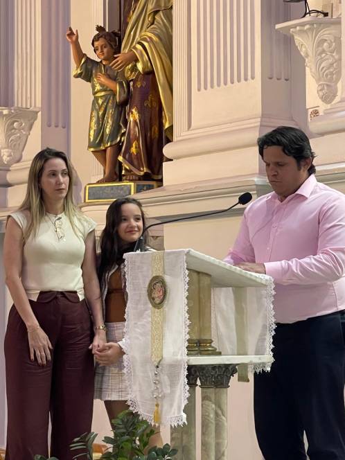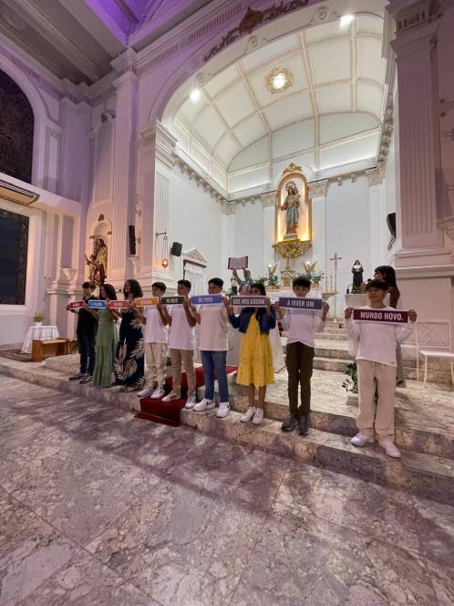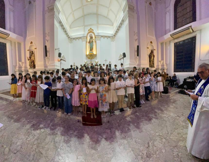 Dando mais um passo na preparação para a Primeira Eucaristia, 90 alunos do CENSA que este ano receberão o sacramento, participaram da Renovação das Promessas do Batismo, na quarta-feira, 17/9. A celebração foi presidida por Pe. Murialdo Gasparet, que relembrou o dia do batizado, em que as crianças foram iniciadas e consagradas por seus pais e padrinhos, à vida cristã e a importância do momento.